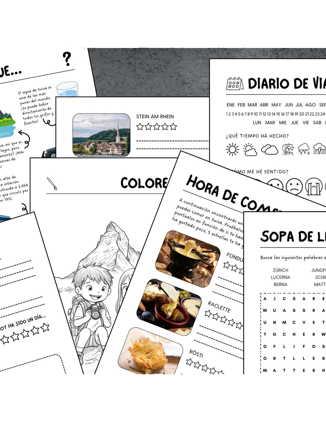 Els records del teu viatge a Suïssa duraran tota la vida amb aquest fantàstic diari de viatge infantil ple d'activitats, passatemps i informació per inspirar els nens a aprendre curiositats sobre aquesta destinació i també a escriure i dibuixar les seves aventures.